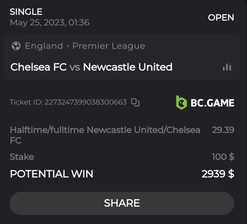 15. Ticket ID / Bet ID : 2258529849956245783