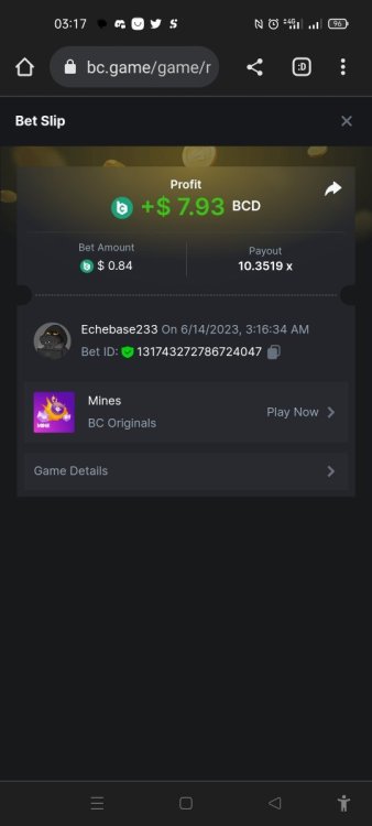 10. https://bc.game/#/sd/117H2E610NG5CJ The first one I posted I couldn't get the medium tower link. I didn't read the rules so I just did now and won this one. Again But busted though